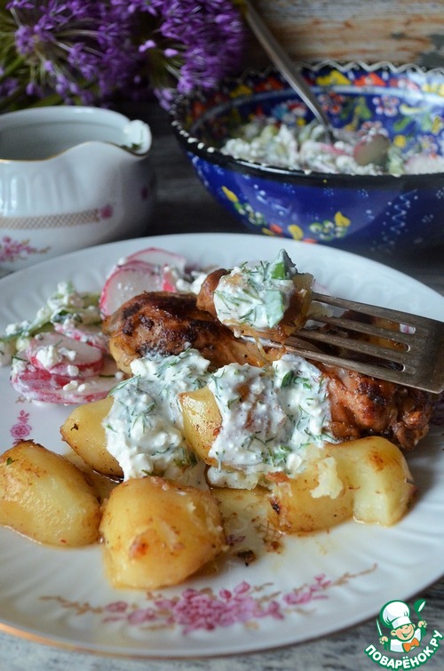 Рецепт «Курица и картофель с творожным крем-соусом»: