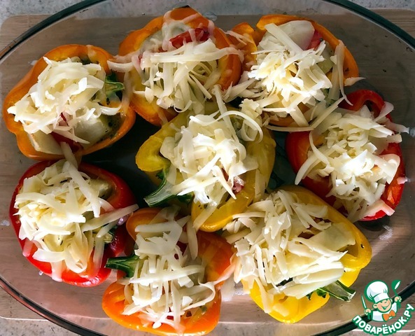 9. Посыпаем перцы сыром и отправляем в духовку еще на 5-10 минут для расплавления сыра.