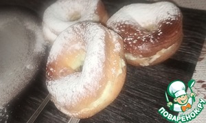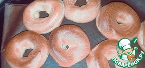 Переносим тесто в кондитерский мешок. Отсаживаем тесто на противень, застеленный пергаментом. Должны получится колечки. Я делала среднего размера, примерно 7-8 см в диаметре.