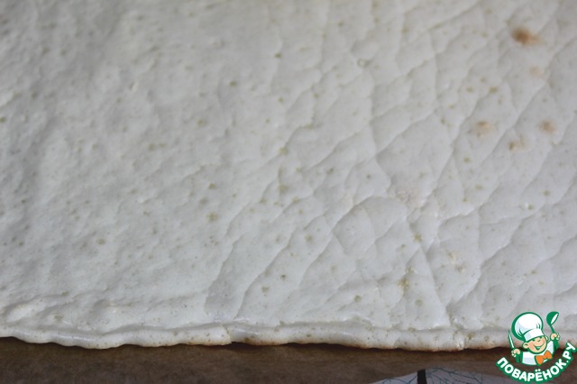 Выкладываем массу в прямоугольник приблизительно 30х25 см ровным слоем.