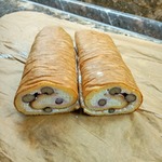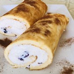 Я разрезала на 2 части и кончики рулетов обрезала наискосок.