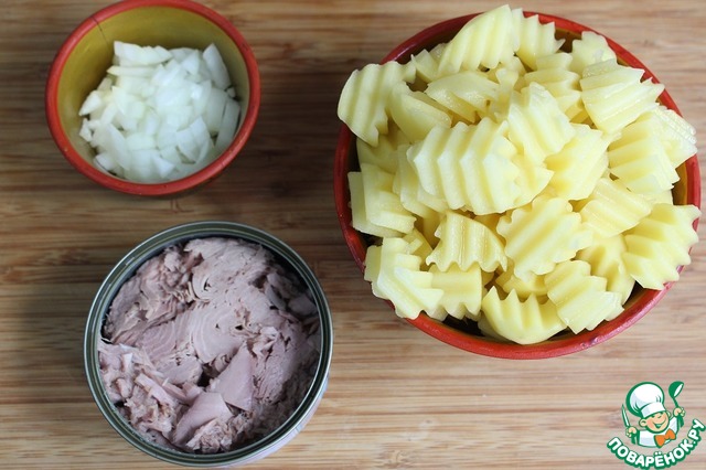 Ингредиенты для «Картофельно-творожная запеканка с консервированным тунцом»: