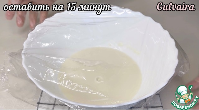Добавляем 2 ст. л муки от общего количество. Перемешиваем и оставляем на 15 минут.