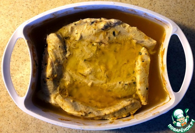 4. Маринуем филе в маринаде (в той же форме). Закрываем фольгой и оставляем в холодильнике на 30-60 минут.