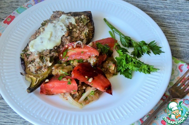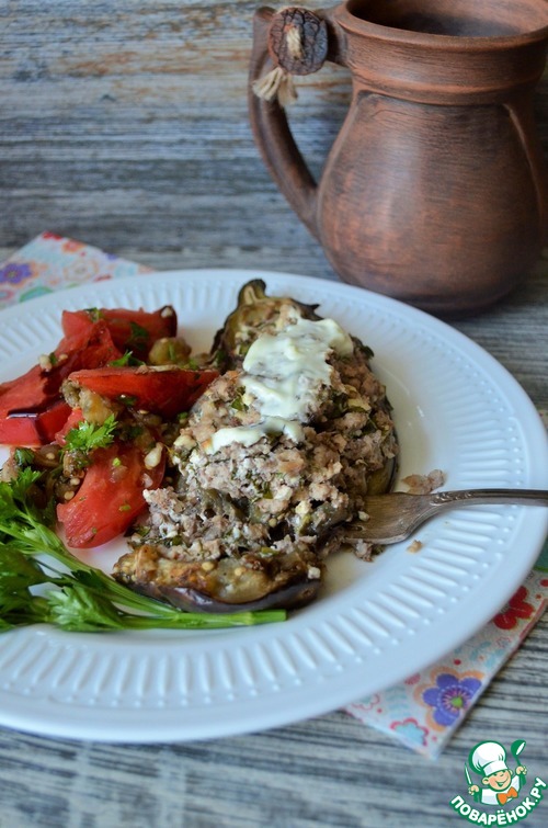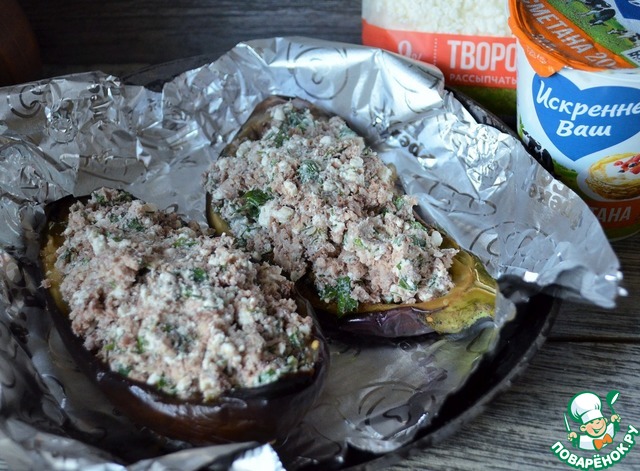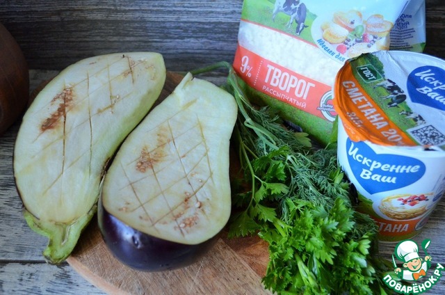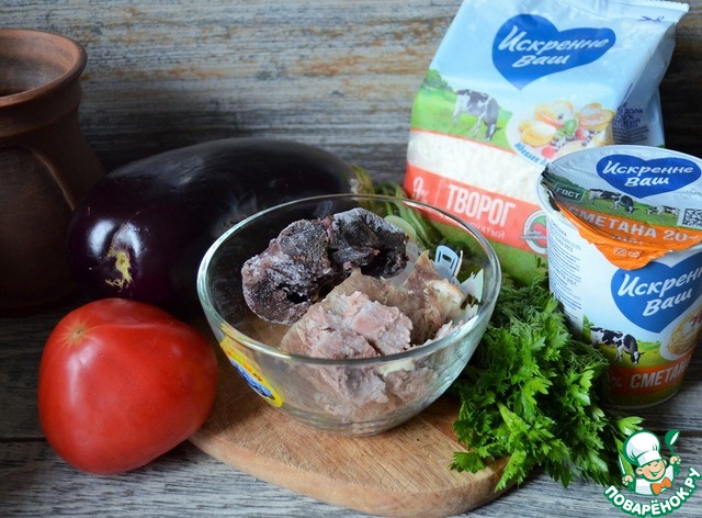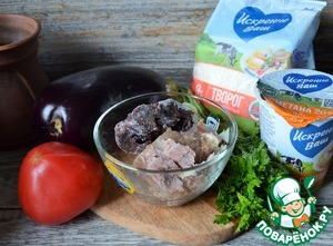 Ингредиенты для «Баклажаны с говядиной и творогом»: