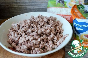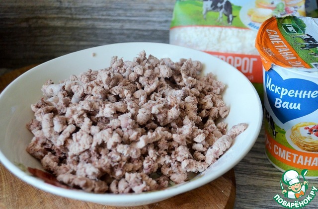 Приготовить продукты, у меня вареные говядина и говяжье сердце. А молочные продукты я использую от ТМ "Искренне Ваш".