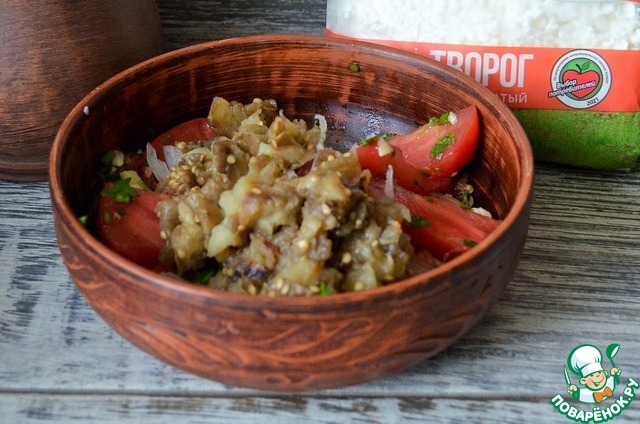 Осталось отварное мясо, есть баклажан и творог?!, у меня сегодня так. Вот и решила приготовить горячее, объединив всё это и дополнив салатом. Получилось очень вкусно, рекомендую.