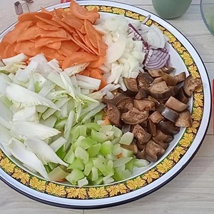 • Овощи чистим и нарезаем. Часть пекинской капусты оставить в свежем виде.