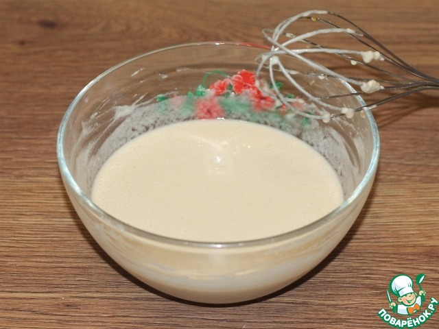 1. Приготовим опару. Предварительно просеять муку. В теплом молоке (или воде) разводим дрожжи. Добавляем сахар (1 ст. л.), муку (5 ст. л.) и перемешиваем.