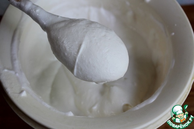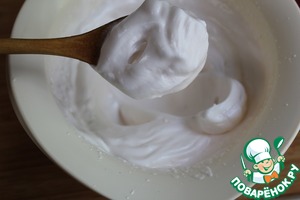 Белки взбить до крепких пиков постепенно добавляя сахар.