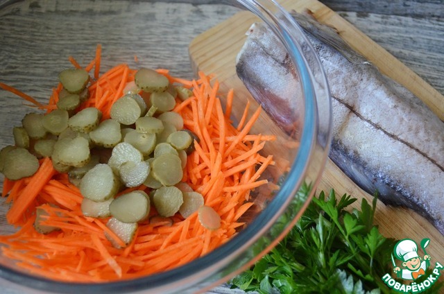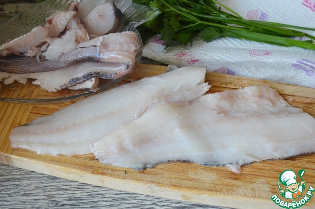 Приготовить продукты. У меня сегодня пикша, также можно использовать треску, минтай, хек. Для облегчения процесса приготовления салата можно использовать филе рыбы.