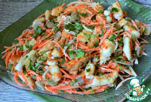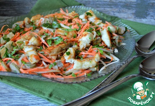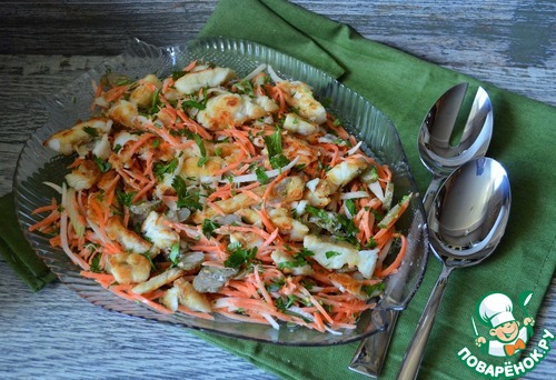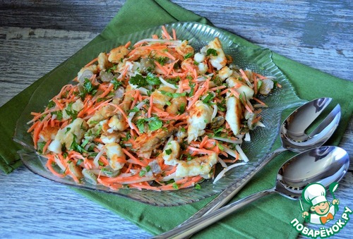 Рецепт «Салат овощной с жареной пикшей»: