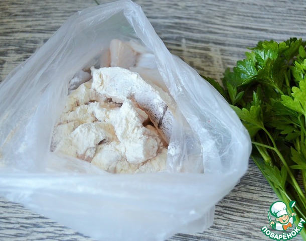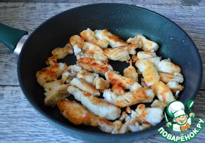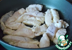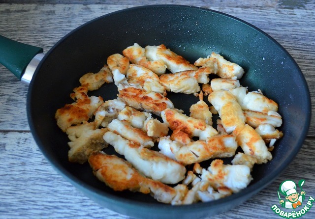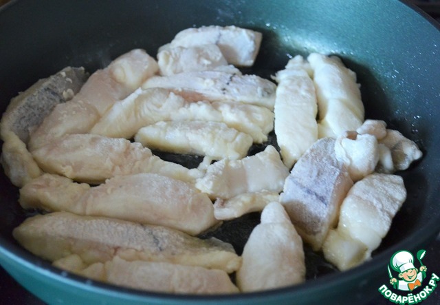 Разогреть сковороду с 1 ст. л. масла и обжарить кусочки рыбы.