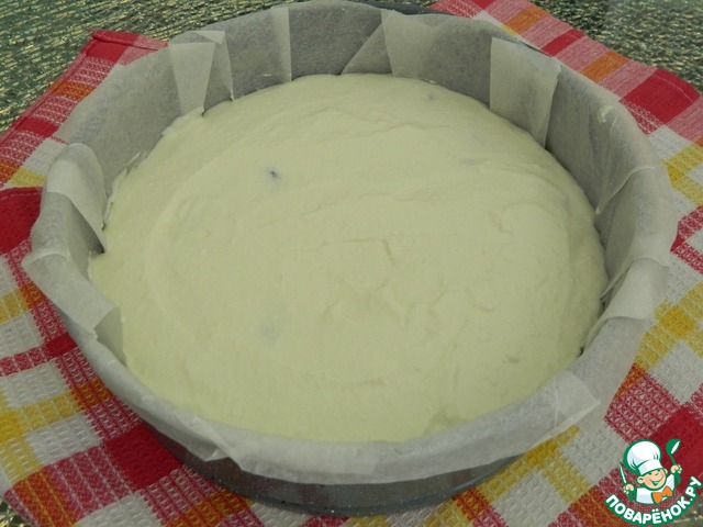 Форму диаметром 20 см смазажем сливочным маслом или застелем силиконизированным пергаментом, выложим тесто и выпекаем его 50-55 минут при температуре 180 гр.