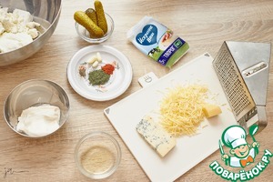 Ингредиенты для «Закусочный чизкейк с маринованными огурцами»:
