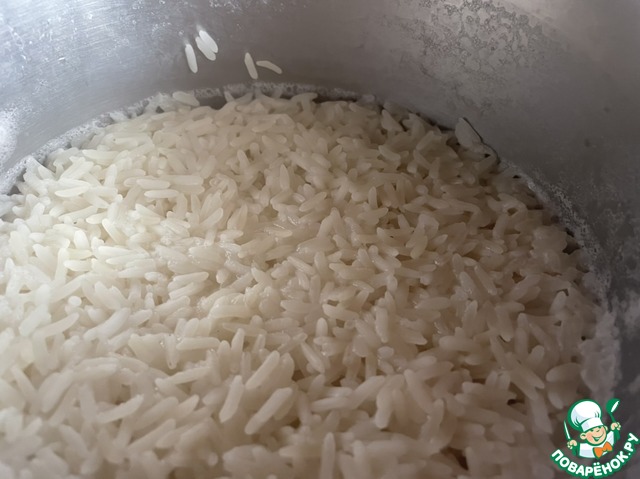 Рис отварите в подсоленной воде, добавьте сливочное масло, перемешайте.