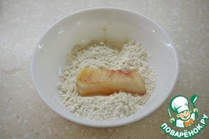 Каждый кусочек обваляйте в муке, затем в яично-сырной смеси, и опять в муке.