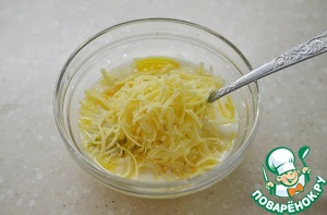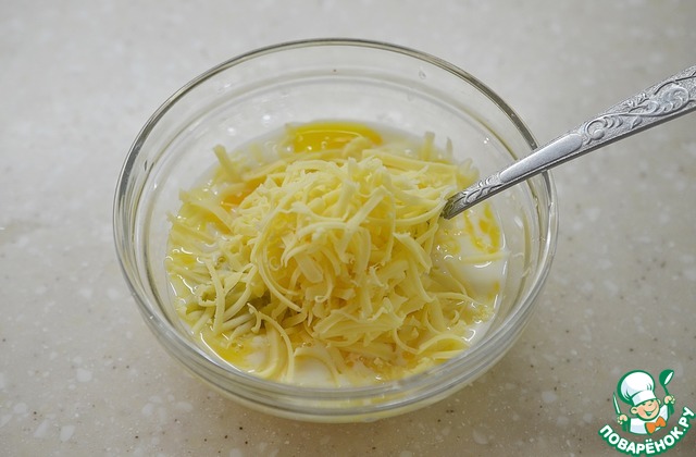 Добавьте натертый на мелкой терке сыр, перемешайте.