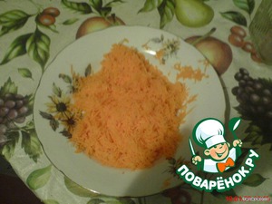 Трем морковь на мелкой терке (делаю все мелко, т. к. в семье не очень любят лук и морковь).