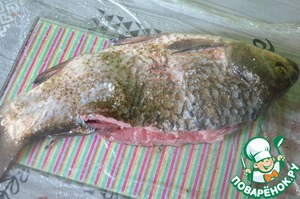 Рыбу почистить, вымыть, разрезать вдоль спинного плавника, извлечь хребет, выпотрошить через спинку