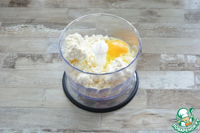 Введите в тесто измельченный творог с яйцами, вливайте понемногу сыворотку до желаемой консистенции теста. Оставьте тесто на 15-20 минут, после чего добавьте масло и еще раз хорошо размешайте венчиком.
