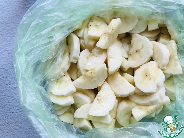 Спелый или переспевший банан нарезаю, кладу в пакет и замораживаю. Я нарезаю мелко, чтобы блендеру было легче его измельчить.