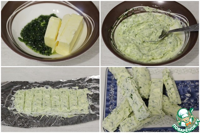 Для этого мягкое масло необходимо растереть с песто, выложить на фольгу и убрать в морозильную камеру минимум на 30 минут.