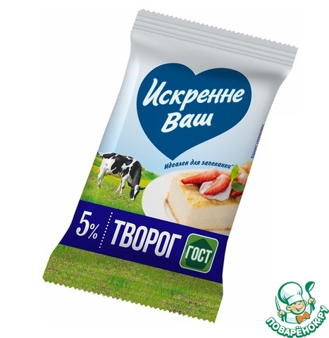 Я использовала 5% творог ТМ "Искренне ваш". Можно взять творог и большей жирности, это уже на ваше усмотрение.