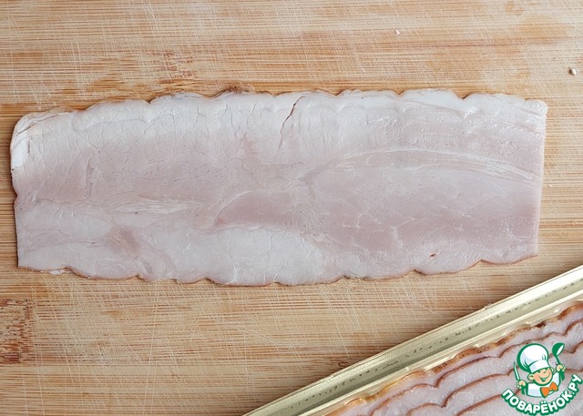 Для рулетиков нам понадобится нарезанные ломтики буженины.
