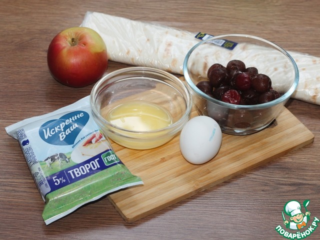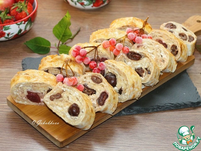Сладкая вариация блюда из пшеничного ролла в духовке. Такой а-ля штрудель можно приготовить не только с вишней и яблоками, но и с другими фруктами.