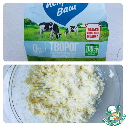 - Творог (у меня творог ТМ «Искренне Ваш») — 200 г