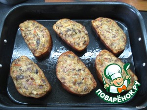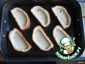 Полученные таким образом хлебные лодочки-формочки выкладываем на противень, смазанный растительным маслом.