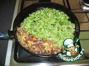 Нарезанный лук слегка взбодряем в разогретой с небольшим количеством растительного масла сковороде.