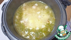 4. Добавляем в чашу пшено, воду и картофель - Режим «Тушение / Суп» 50 минут. За 10 минут до окончания готовки добавьте специи и укроп.