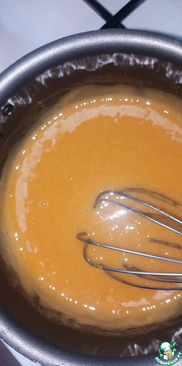 Финишный слой будет желе из мангового сиропа и кокоса.