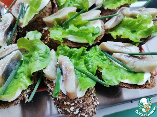 Рецепт «Мини-бутерброды с творожным сыром и сельдью»: