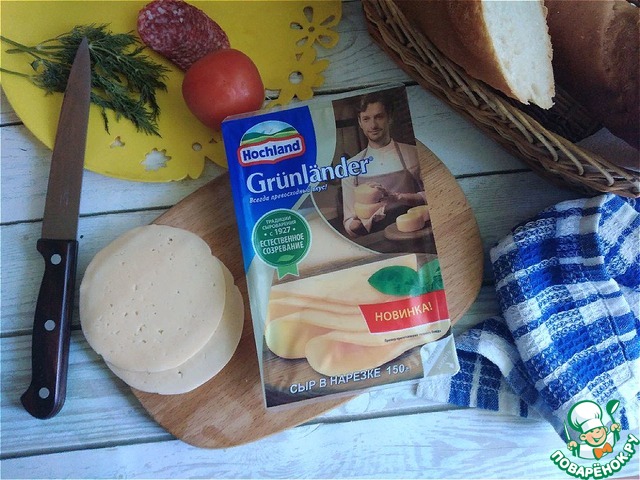 - Сыр полутвердый (в нарезке) — 2 ломт.