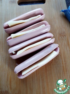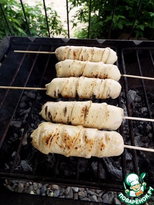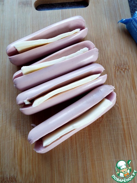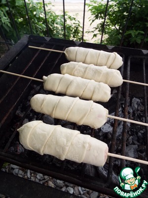Рецепт «Сырная сосиска в тесте на мангале»: