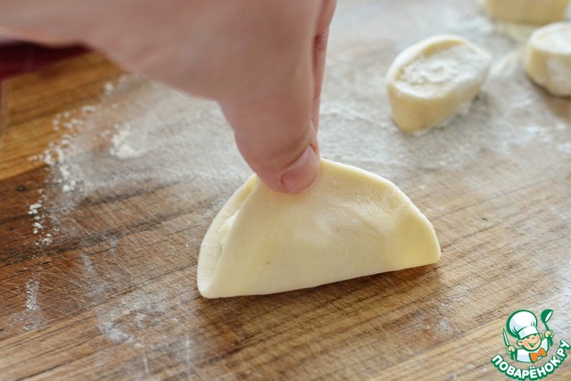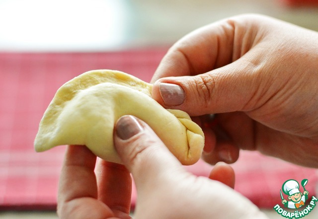 Теперь внимание! Переверните вареник "спиной" к себе и ещё раз пройдите хорошо пальчиками по всей дуге. Это гарантирует надёжное скрепление краёв.