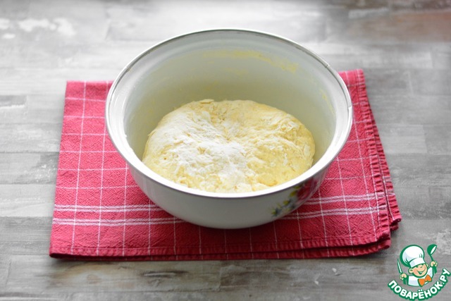 Поэтому, по истечении 40 минут, обильно посыпьте рабочую поверхность мукой (оставшиеся 0,5 стакана) и хорошо вымесите тесто. Вы заметите, как оно стало более гладким и эластичным. Если считаете, что тесто мягковато, то на этом этапе можно вмешать дополнительную муку.