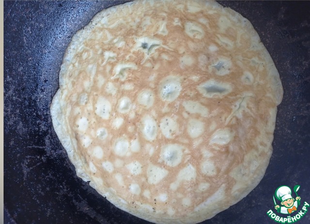 Сковороду смазываем маслом и выпекаем яичные блины (омлет). Запекаем с двух сторон.