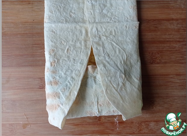 Края лаваша загибаем на начинку.