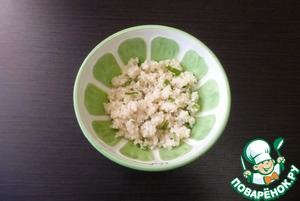 Собрать боул, положив на дно пиалки кускус с зеленью.