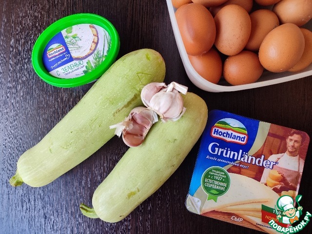 Ингредиенты для «Яично-кабачковый рулет с творожным сыром»: