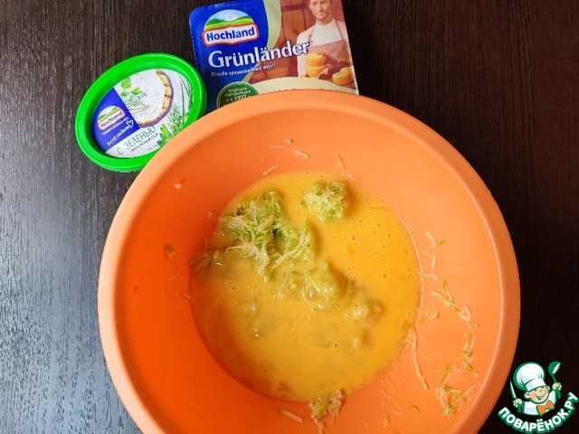 Кабачок (400 граммов) натереть на мелкой терке, тщательно отжать и посолить.