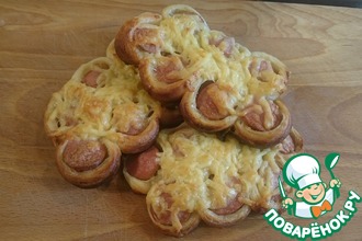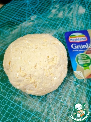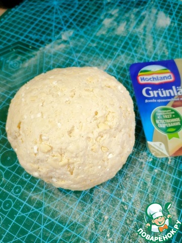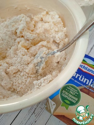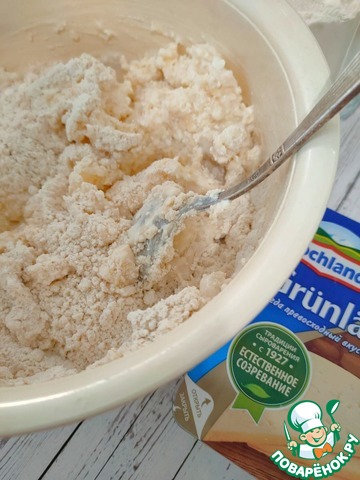 Соедините мучную и творожно-сырную массы. Добавьте молоко и замесите мягкое тесто.