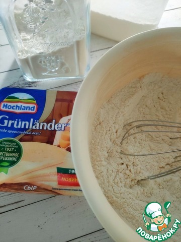 Приготовьте тесто. Муку и разрыхлитель просейте через мелкое сито.