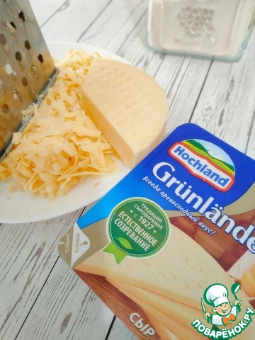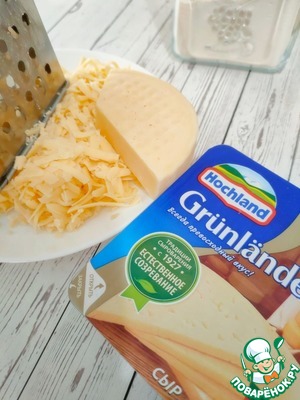 Сыр (у меня Грюнландер ТМ "Hochland" ) натрите на крупной тёрке.