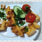 Дать вафлям остыть. Положить в контейнер и везти на пикник, где можно обогатить вкус вафель творожным сыром с зеленью Hochland., огурцом, помидорками и зеленью.
