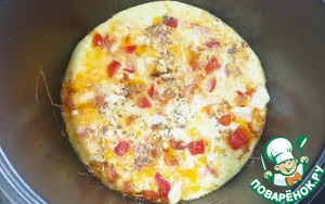 Добавляем в чашу брынзу, заливаем яичной смесью и посыпаем перчиком - Режим «Выпечка» 15 минут.